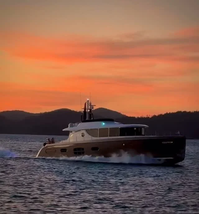 Your guests are equally accommodated in queen & double beds with generously appointed ensuite bathrooms and flat screen TVβs throughout. Her well-appointed galley located up is an added feature to the main saloon with a further utility room and laundry on the lower deck. NISI is born from generations of shipbuilding experience and draws on expertise from three continents. The finest features of each regionβs traditional boat building heritage are integrated to produce a modern yacht of surpassing style and quality. The collaboration with world-renowned naval architect, Ward Setzer of Setzer Yacht Architects has resulted in an award winning masterpiece.